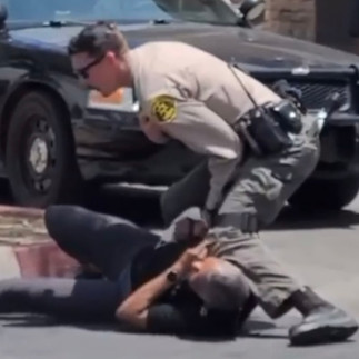 In the video we see a male been question and then a few minutes detained, we see a woman recording with her cell phone, next we see one LASD officer approached her, then in the video we see how she was body slam onto the parking lot asphalt .